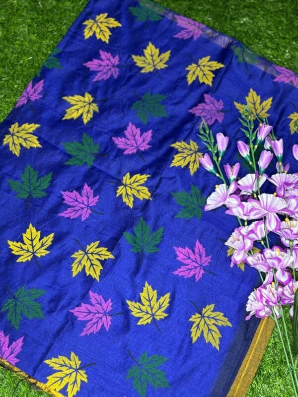 Khadi Silk Cotton Saree with Leaf Print & Running Blouse